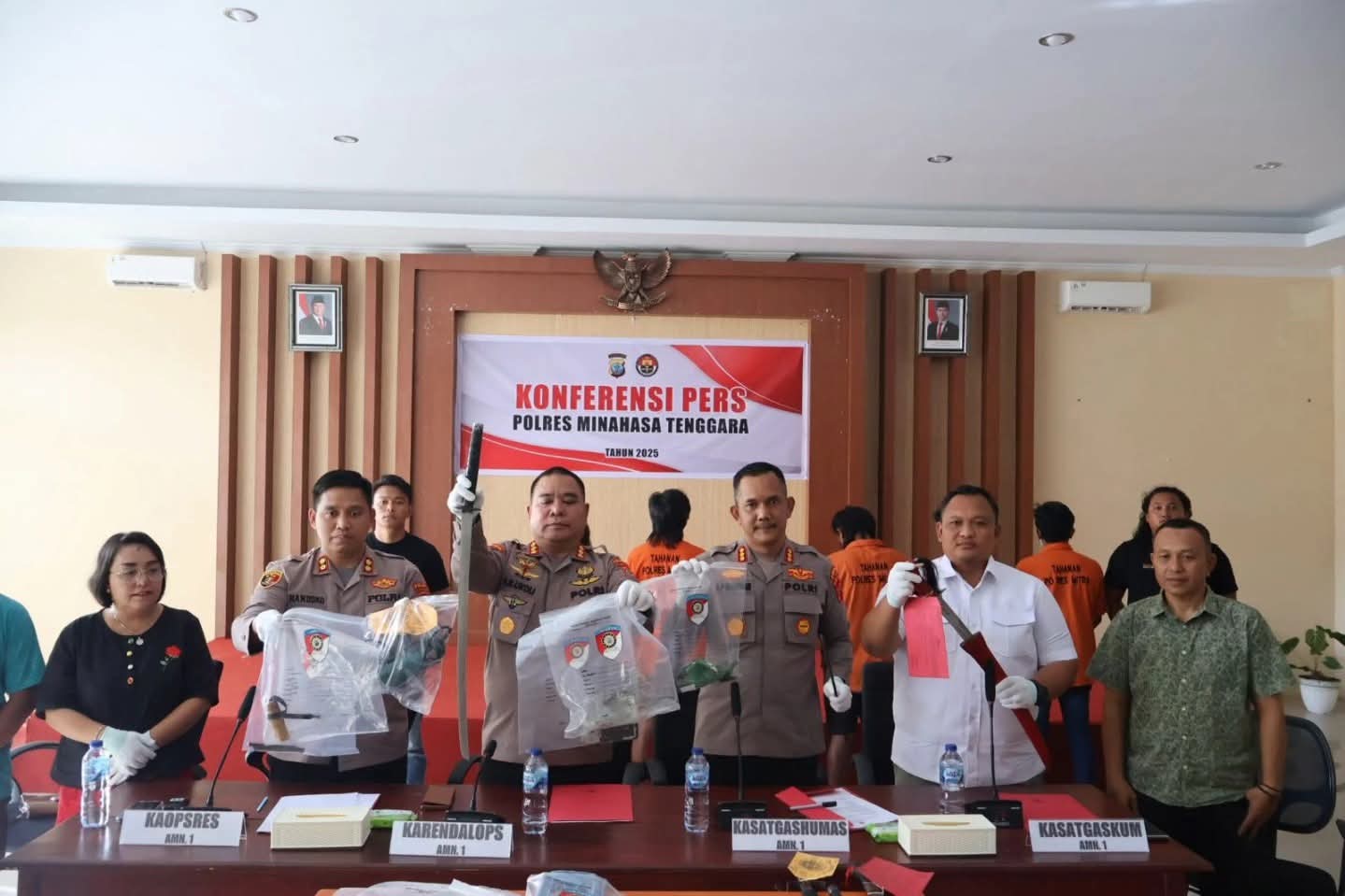“Terdiri dari, 3 orang terkait pelemparan, kemudian 2 orang membawa senjata tajam, dan 5 orang membuat senjata tajam seperti panah wayer dan lain-lain,” ujarnya dalam press conference di Mapolres Minahasa Tenggara, Selasa (2/12/2025) siang.