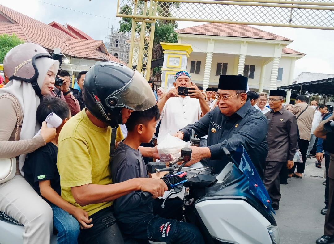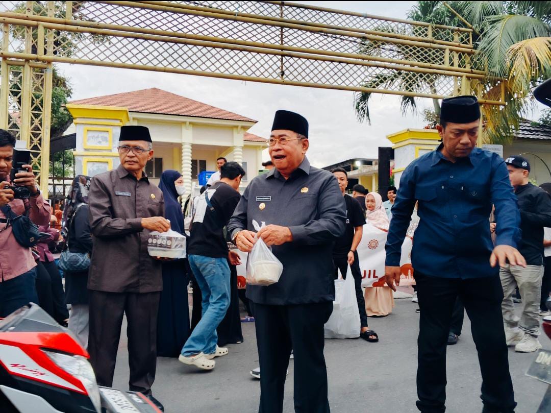 Wali Kota Gorontalo membagikan takjil kepada masyarakat bersama keluarga Yummi Place Kegiatan ini menjadi wujud kepedulian dan semangat berbagi kepada warga yang melintas menjelang waktu berbuka puasa di bulan Ramadan