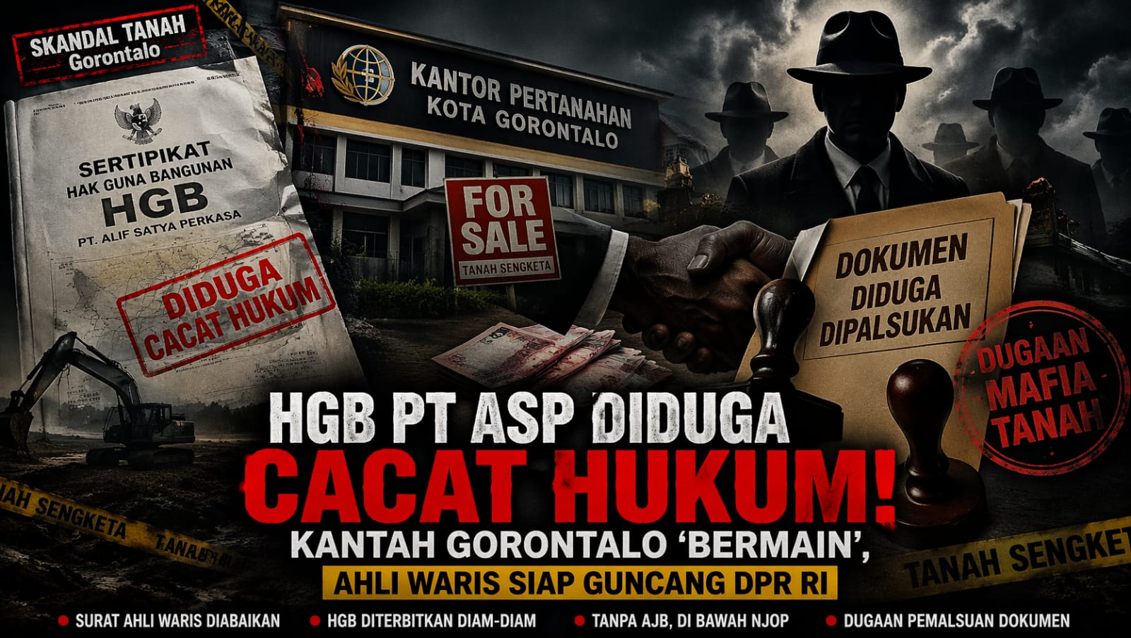Tabayyun.co.id, GORONTALO – Polemik penerbitan Hak Guna Bangunan (HGB) atas nama PT. Alif Satya Perkasa oleh Kantor Pertanahan (Kantah) Kota Gorontalo terus bergulir dan kini memasuki babak baru. Meski telah ada rekomendasi pembatalan dari DPRD Provinsi Gorontalo serta Laporan Hasil Pemeriksaan (LHP) Ombudsman RI, pihak Kantah justru menyatakan bahwa persoalan tersebut tidak mengandung unsur sengketa.
