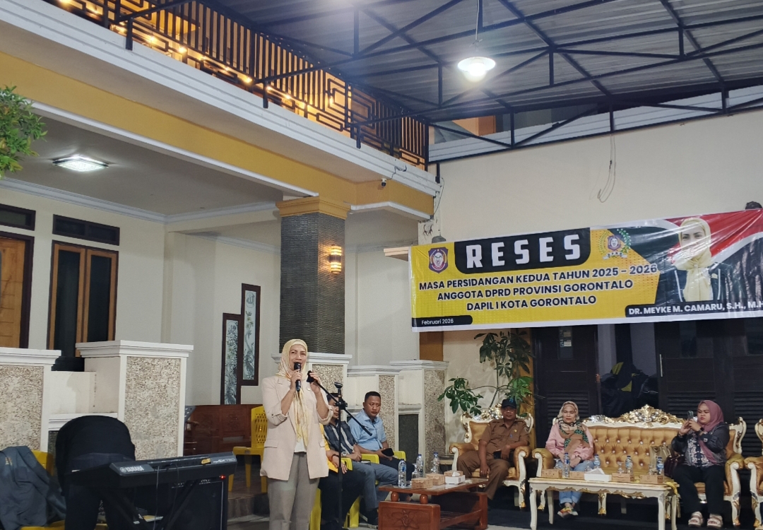Tabayyun.co.id, Gorontalo – Anggota DPRD Provinsi Gorontalo dari daerah pemilihan Kota Gorontalo, Meyke Camaru, menggelar reses masa sidang kedua tahun 2025–2026 di Kelurahan Libuo, Kecamatan Kota Barat, Kota Gorontalo, Senin (9/2/2026).