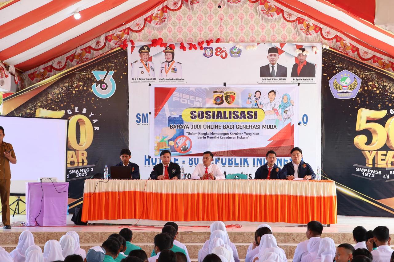 Melalui kegiatan sosialisasi bertajuk “Bahaya Judi Online bagi Generasi Muda dalam Rangka Membangun Karakter yang Kuat serta Memiliki Kesadaran Hukum”, tim Ditreskrimsus hadir di SMA Negeri 3 Kota Gorontalo, Sabtu (18/10/2025).