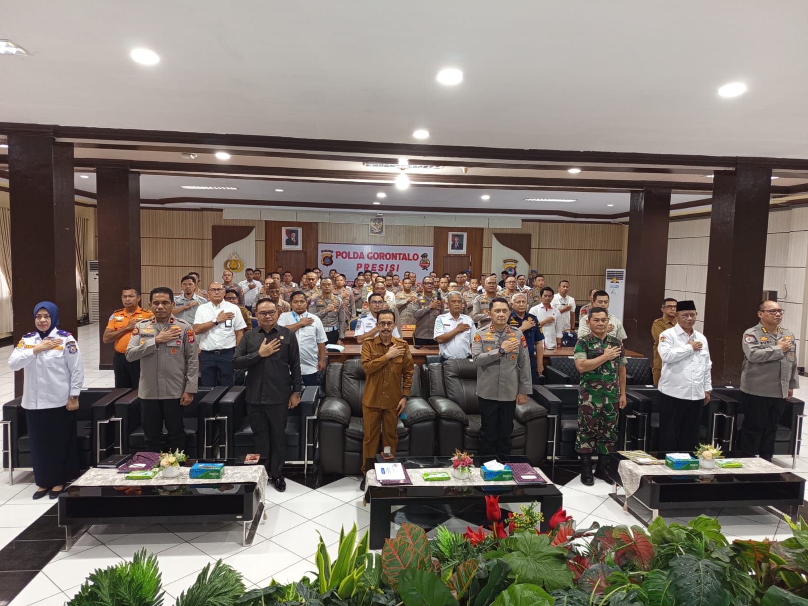 Kegiatan dipimpin langsung oleh Kapolda Gorontalo dan dihadiri unsur Forum Koordinasi Pimpinan Daerah (Forkopimda) serta sejumlah instansi vertikal dan pemerintah daerah. Hadir pula perwakilan Pemerintah Provinsi Gorontalo, Danrem 133/Nani Wartabone, Kementerian Agama, Dinas Perhubungan, Basarnas, BMKG, Jasa Raharja, Pertamina, KSOP, pihak Bandara Djalaluddin, serta Forum Kerukunan Umat Beragama (FKUB) Provinsi Gorontalo.