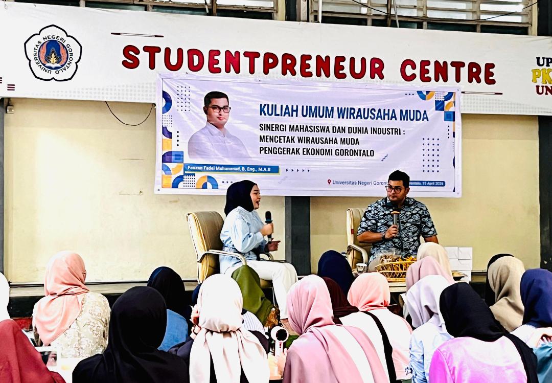 Tabayyun.co.id, GORONTALO — Praktisi usaha sekaligus calon Ketua Kadin, Fauzan Fadel, menjadi narasumber utama dalam kuliah umum wirausaha muda di Universitas Negeri Gorontalo (UNG), Rabu (15/4/2026). Kegiatan ini menghadirkan diskusi interaktif antara mahasiswa dan pelaku industri.