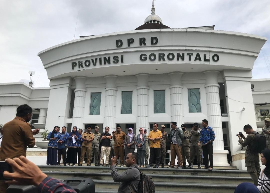 Aksi unjuk rasa berlangsung di Gedung DPRD Provinsi Gorontalo pada Senin (1/12/2025). Para kepala desa meminta pemerintah mencabut PMK 81/2025 serta mempercepat pencairan anggaran yang digunakan untuk pembayaran insentif sejumlah perangkat desa dan tenaga layanan masyarakat.