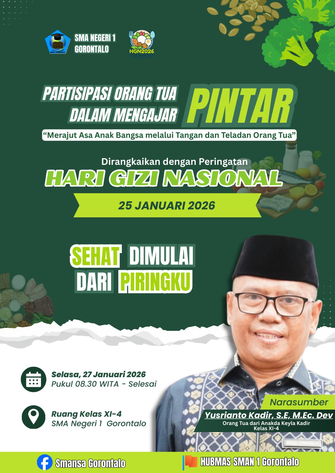 Salah satu orang tua yang terlibat dalam kegiatan tersebut adalah Yusrianto Kadir. Ia turut berpartisipasi sebagai pengajar di kelas XI.4 SMA Negeri 1 Gorontalo dalam rangkaian Program Pintar.