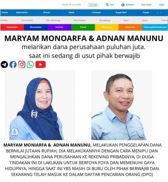 GORONTALO – Sebuah pamflet liar yang beredar di Kota Gorontalo menuding dua pegawai Perusahaan Umum Daerah (Perumda) Muara Tirta, Maryam Monoarfa dan Adnan Manunu, menggelapkan dana perusahaan hingga puluhan juta rupiah.