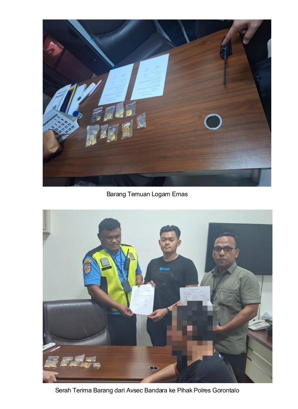 Setelah proses pemeriksaan selesai, petugas Avsec menyerahkan barang temuan tersebut kepada pihak Polres Gorontalo.