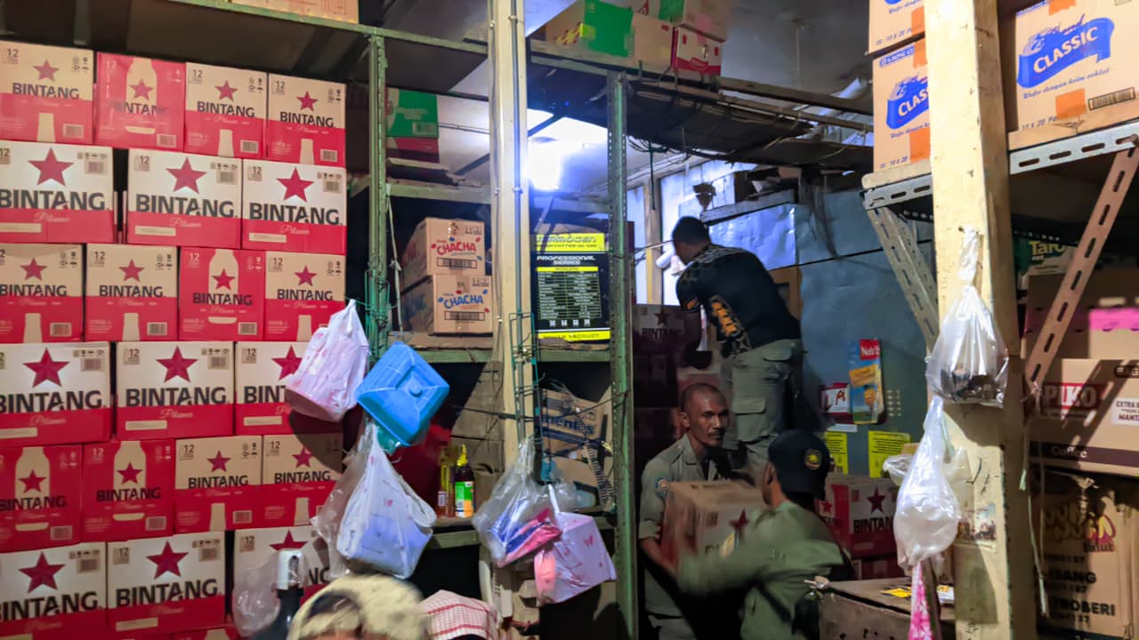 Razia dimulai sekitar pukul 11.30 WITA dan menyasar sejumlah toko yang dicurigai menjual miras tanpa izin resmi. Dari hasil pemeriksaan, satu toko ditemukan menyimpan ribuan karton miras berbagai merek dan jenis.