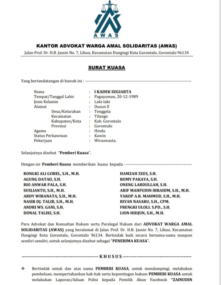 Ketua Tim AWAS, Rongki Ali Gobel, menilai langkah bersama para pengacara ini bukan sebatas pendampingan hukum, tetapi wujud solidaritas antar warga amal yang merasa profesinya direndahkan.