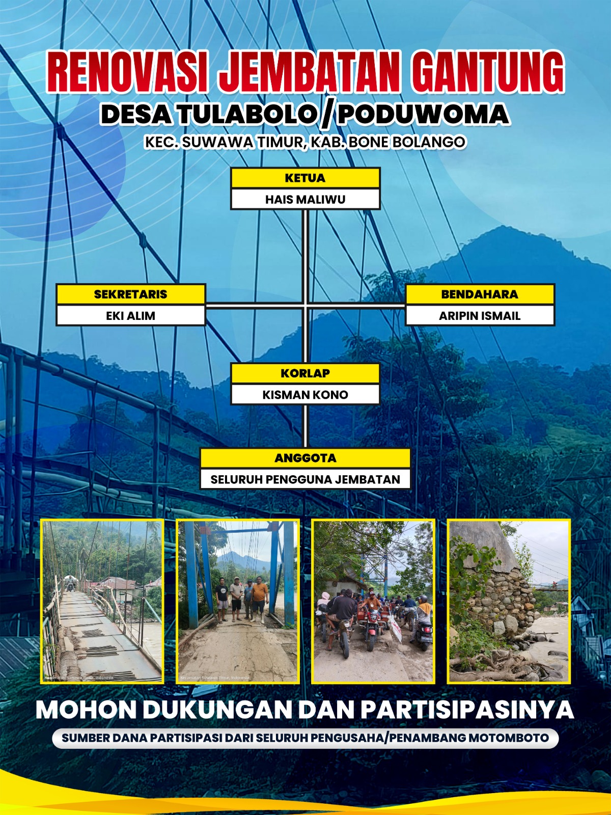 Pembangunan jembatan juga mendapat support dari pemerintah desa setempat dan Jaringan Penambang Tradisional Suwawa (Japetras).