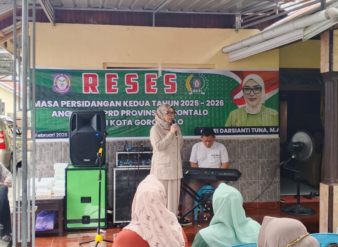 Tabayyun.co.id, GORONTALO,— Anggota DPRD Provinsi Gorontalo, dr. Darsianti Tuna, menggelar Reses Masa Sidang Kedua Tahun 2025–2026 di Kelurahan Molosipat W, Kecamatan Kota Barat, Kota Gorontalo, Senin (9/2/2026). Kegiatan ini menjadi ruang dialog terbuka bagi warga untuk menyampaikan berbagai keluhan, terutama terkait persoalan banjir.